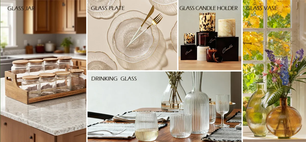 מוצרים עיקרייםצנצנת אחסון זכוכית, מתקן משקאות זכוכית, מדבקה וויסקי זכוכית, מחזיק נר זכוכית, אגרטל זכוכית